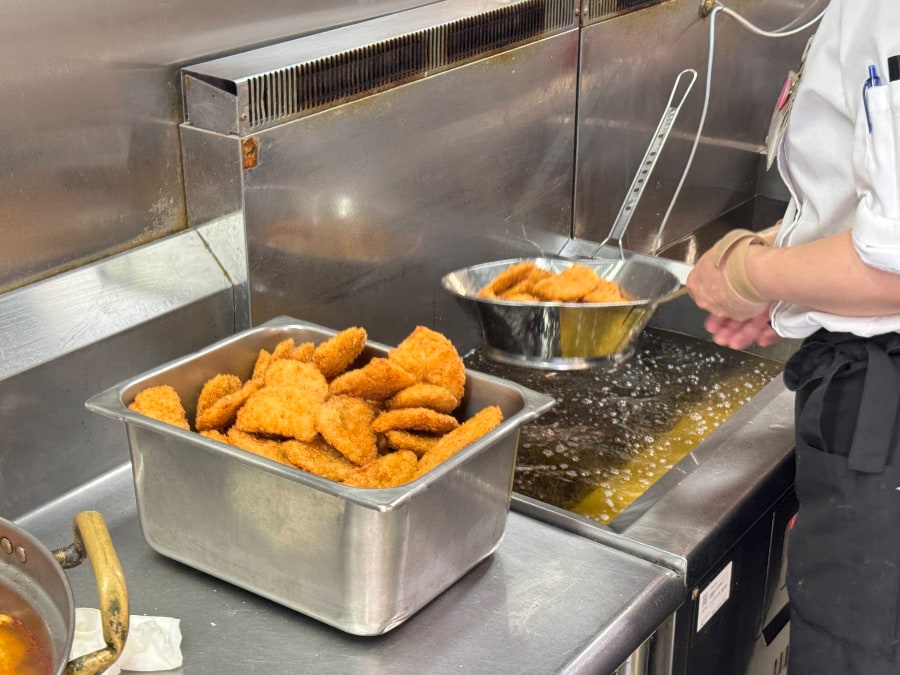 ランチタイムは「とにかくスムーズに食べさせること」を重視する一方で、夜時間帯には一変して「ひと手間かけたメニュー」が顔を覗かせます。なかでも夜限定の「油淋鶏」は主菜の中では不動のナンバーワン。さらに、年に数回しか現れない「サーモン炙りハラス丼」は、学生の間でカルト的人気を博す伝説のメニューとなっています。