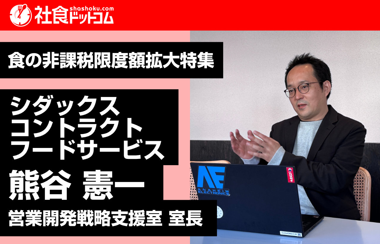 本記事では、給食運営会社であるシダックスコントラクトフードサービスの営業/外販 統括本部 営業開発戦略支援室の熊谷室長にお話をうかがいました。オイシックスグループの調達力を活かした高品質なメニュー開発や、調理工程の効率化で食材の質を底上げする「タイパ給食」や、税制改正を好機に変え、企業の成長を「食」から支える最先端の戦略と、明日から取り入れられる運用のヒントを探ります。