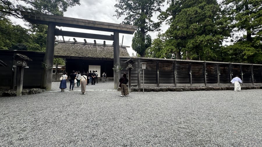 電車に揺られ、やがてたどり着いた伊勢の地。伊勢市駅から外宮までは徒歩で5分程度です。凛とした空気の中、外宮の参道を進みます。手水舎で身を清め、一歩一歩、玉砂利を踏みしめる音だけが響く神聖な空間に身を置くと、自然と背筋が伸びます。